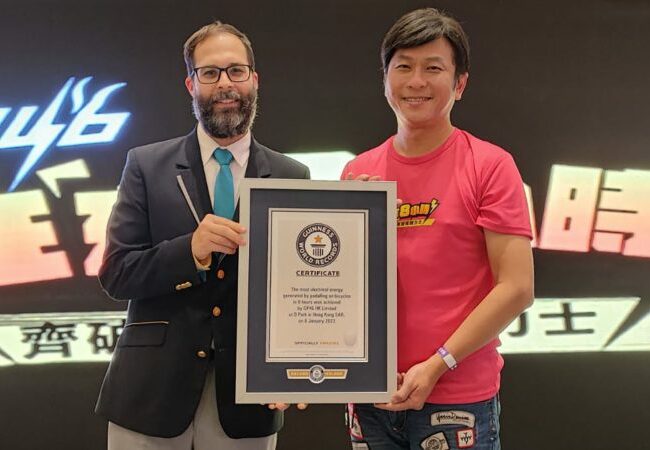 Yesir guides student group GP46 to set a new milestone: breaking the Guinness World Record by charging the bicycle for 8 hours to generate electricity!